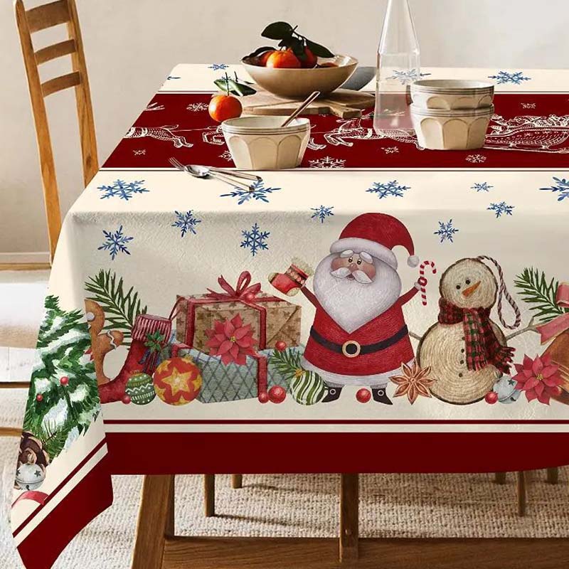 STWÓRZ ŚWIĄTECZNĄ ATMOSFERĘ: Zmień swoje doznania kulinarne dzięki naszemu świątecznemu obrusowi, który natychmiastowo doda ciepła i uroku Twojemu świątecznemu stołowi. Dzięki świątecznym wzorom przedstawiającym Świętego Mikołaja i bałwanki obrus ten stanowi idealne tło dla rodzinnych spotkań i uroczystości. Spraw, aby Twoje świąteczne kolacje były niezapomniane i atrakcyjne wizualnie, tworząc przytulną przestrzeń dla swoich bliskich.