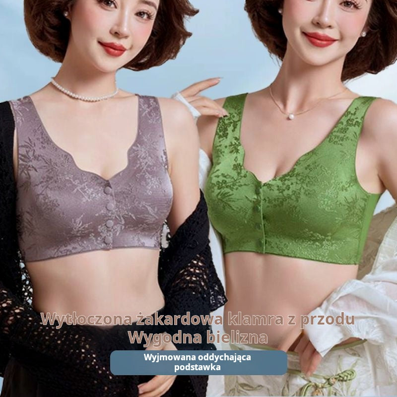 Praktyczne zapięcie z przodu: Biustonosz posiada łatwe w użyciu zapięcie z przodu, które pozwala na szybkie i łatwe zakładanie oraz zdejmowanie, zapewniając jednocześnie bezpieczne podtrzymanie i optymalny komfort. Nadaje się do noszenia na co dzień lub na specjalne okazje.
