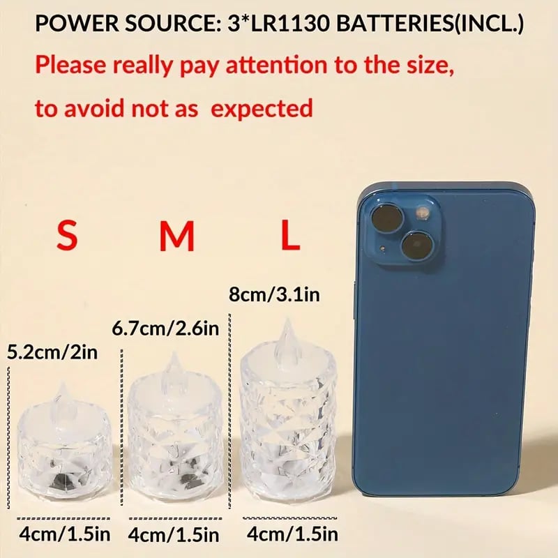 Realistyczny migoczący płomień: Wyposażony w zaawansowaną technologię LED, Crystal Flameless Candle Light naśladuje delikatny, migoczący efekt prawdziwej świecy. Subtelny blask podkreśla atmosferę, dzięki czemu idealnie nadaje się na przytulne wieczory, romantyczne kolacje lub świąteczne spotkania.