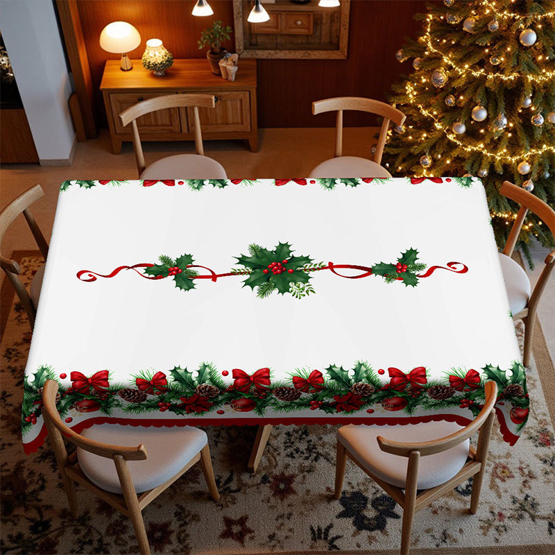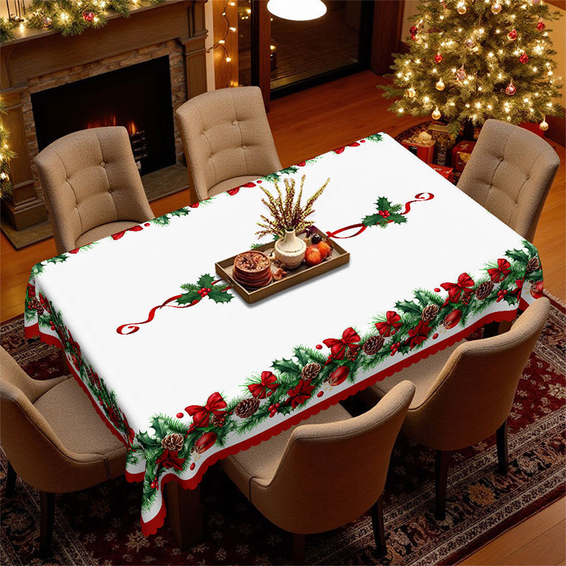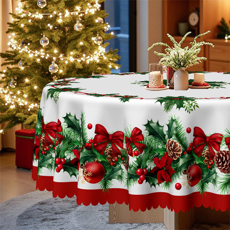 ŚWIĄTECZNY WZÓR – ROZJAŚNIJ SWÓJ STÓŁ: Świeża biała podstawa z czerwonymi kokardkami, wstążkami, zielonym ostrokrzewem i szyszkami natychmiast rozjaśnia każdy stół. Idealny na rodzinne kolacje, świąteczne brunche lub zimowe spotkania, pięknie komponuje się z sezonowymi dekoracjami, tworząc przytulną, świąteczną atmosferę.