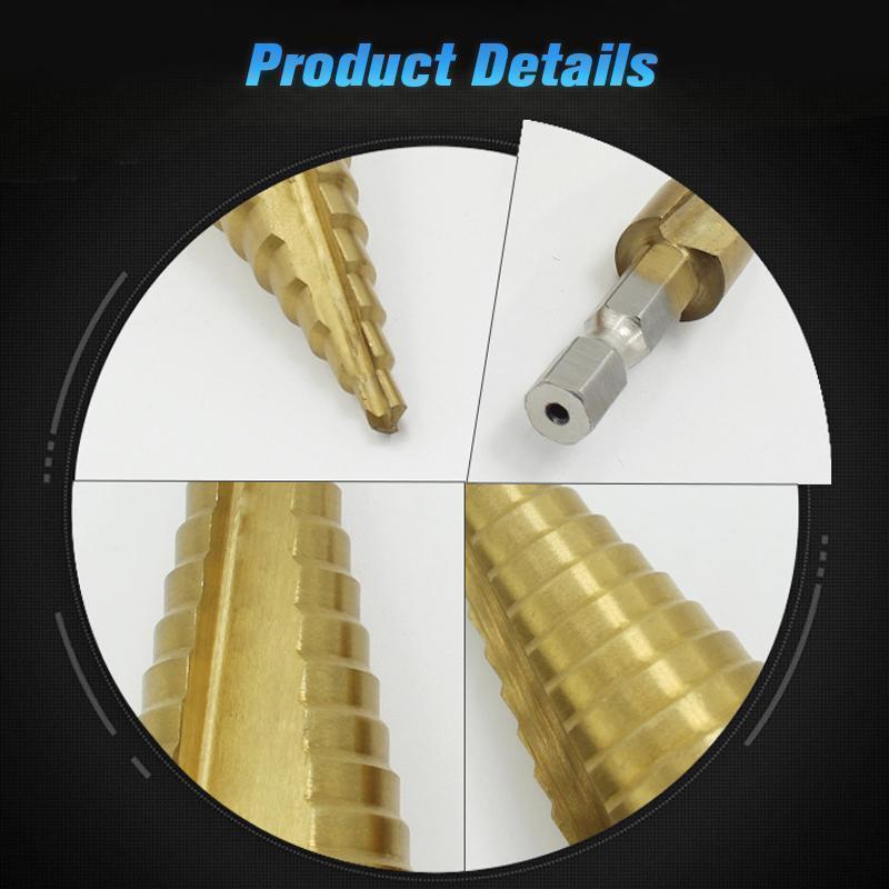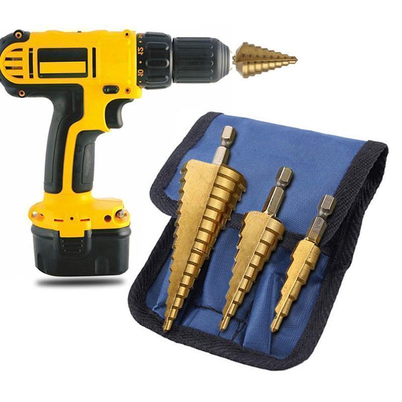 - Te narzędzia do szybkiego wiercenia zawierają 3 pojedyncze wiertła. Są ekonomiczne i łatwe do przechowywania. Tytanowe wiertła z chwytem sześciokątnym doskonale nadają się do wycinania otworów w różnych materiałach, w tym w stali, mosiądzu, drewnie, plastiku itp. Nowa technologia w dziedzinie wierteł; HSS w połączeniu z powłoką tytanową. Bardziej wydajne i trwałe. Konstrukcja High Step pozwala wyczuć zatrzymanie i nigdy nie wiercić większych otworów przez pomyłkę.