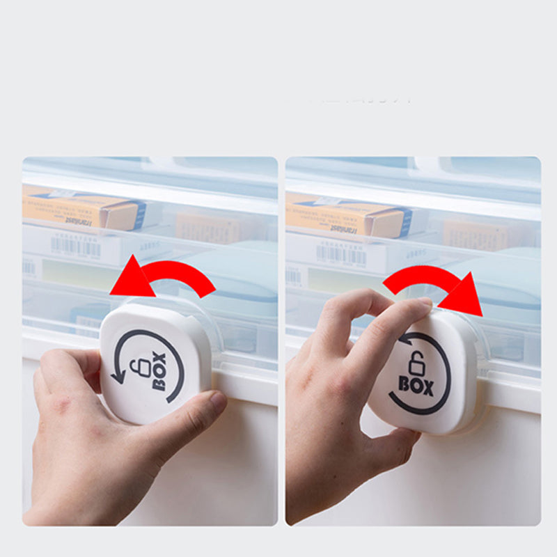 TRÓJPOZIOMOWA KLASYFIKACJA: Sprytnie podzielone na trzy sekcje dla łatwego dostępu. Górna warstwa to strefa awaryjna na przedmioty do szybkiego użycia, środkowa na leki codziennego użytku, a dolna na zapas. Koniec z szukaniem w pośpiechu — wszystko ma swoje miejsce.