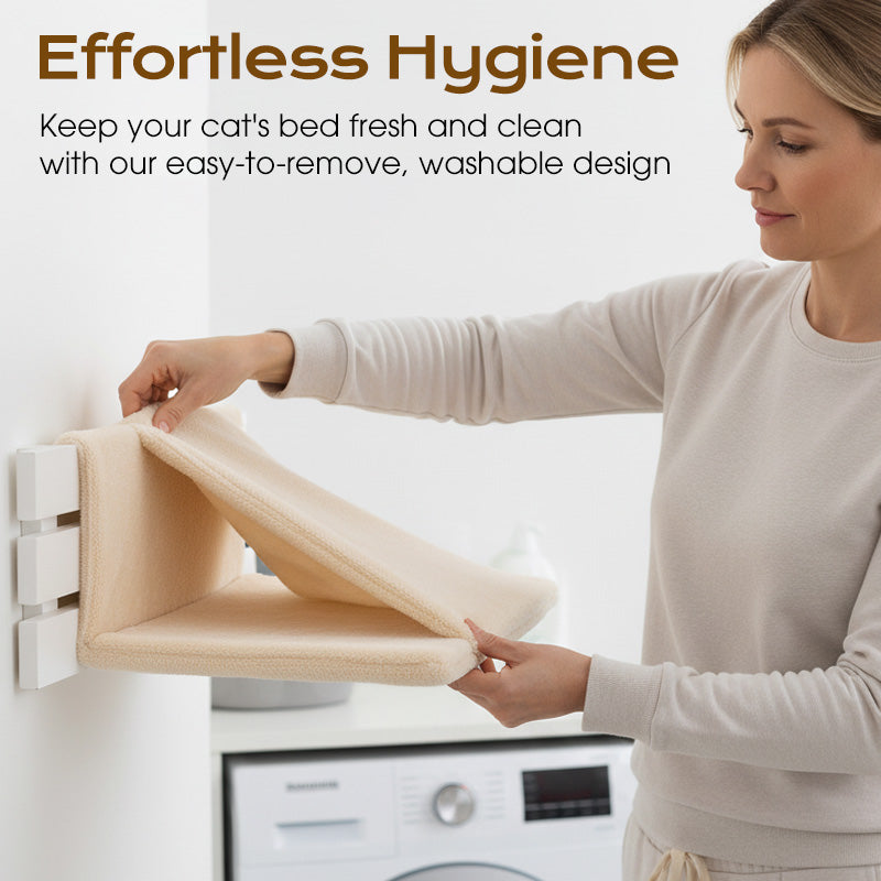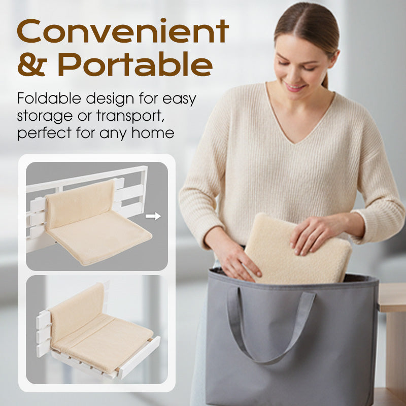 WSZECHSTRONNE UMIEJSCOWIENIE – to przytulne legowisko dla kota można łatwo przymocować do różnych powierzchni, takich jak parapety, oparcia krzeseł lub grzejniki, zapewniając Twojemu kotu wiele podwyższonych miejsc do relaksu i obserwowania otoczenia z wygodnego, bezpiecznego punktu widokowego, maksymalizując jego przyjemność i przestrzeń.