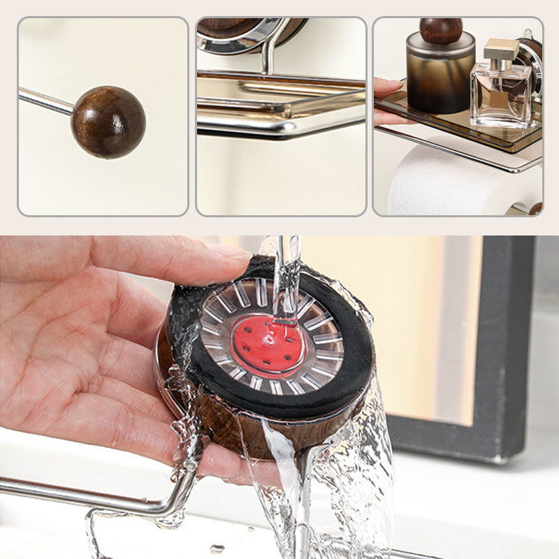WYJMOWANA TACA UŁATWIAJĄCA CZYSZCZENIE: Półka posiada wyjmowaną tacę, która ułatwia czyszczenie. Brak narożników i ukrytych przestrzeni zapewnia higienę i łatwość konserwacji. Idealna do ruchliwych łazienek, gdzie czystość ma kluczowe znaczenie.