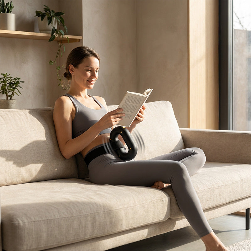 ERGONOMICZNY I WIELOFUNKCYJNY DESIGN – Uniwersalny kształt pierścienia idealnie dopasowuje się do różnych krzywizn ciała podczas użytkowania ręcznego. W połączeniu z paskiem umożliwia w pełni wspomagane sesje masażu. Wytrzymała konstrukcja z ABS sprawia, że urządzenie doskonale nadaje się do regeneracji po treningu i codziennego redukowania stresu.
