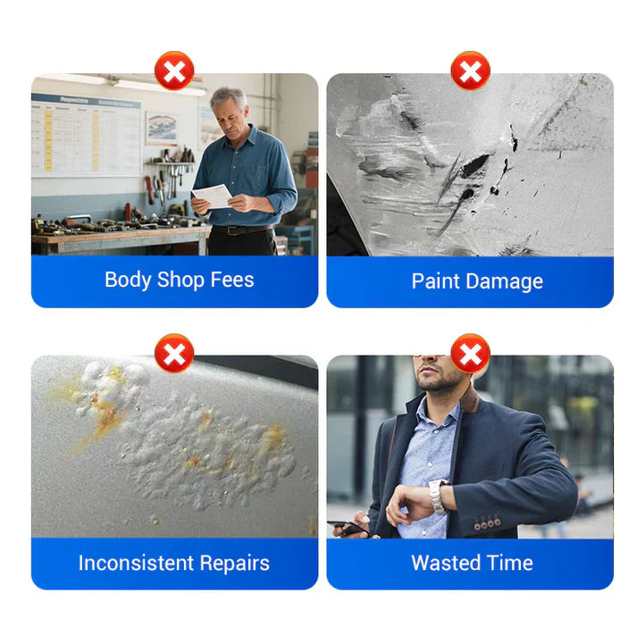WSZECHSTRONNE NARZĘDZIE DO NAPRAWY BLACHY - Zaprojektowane z myślą o szybkiej i precyzyjnej naprawie wgnieceń na powierzchniach blaszanych, jest idealnym narzędziem dla profesjonalnych mechaników lub właścicieli samochodów zajmujących się drobnymi uszkodzeniami.