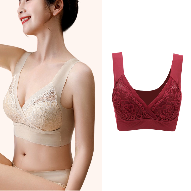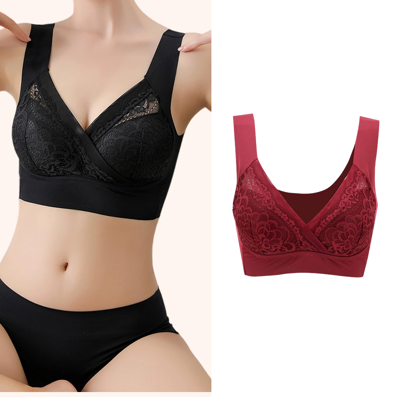 Dzięki unikalnej trójwymiarowej koronkowej konstrukcji miseczek, biustonosz ten nie uciska piersi. Poza tym pomaga podkreślić piersi i nadać im pełniejszy, okrąglejszy i bardziej seksowny wygląd bez drutów.