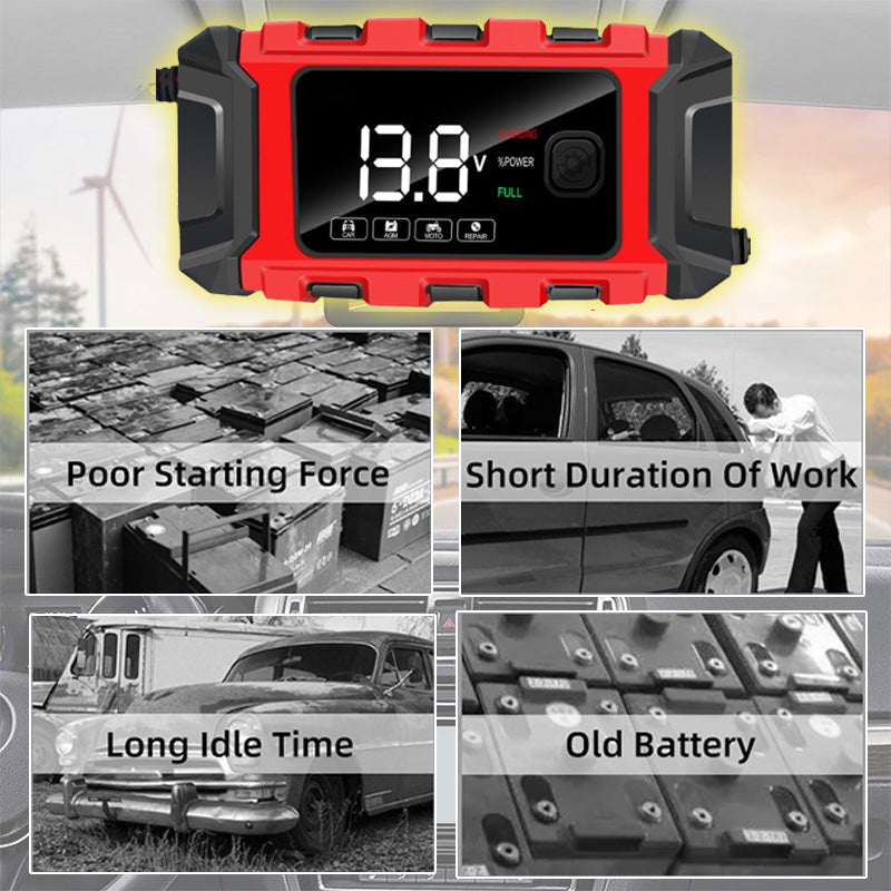 LATEST SMART TECHNOLOGY: Equipped with a smart chip, it delivers the optimal charging current for your cars and motorcycles. The digital display provides real-time charging status updates, keeping you informed at all times.