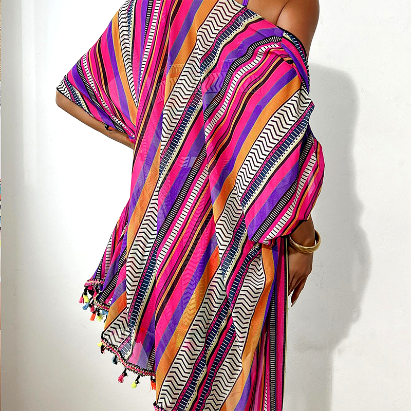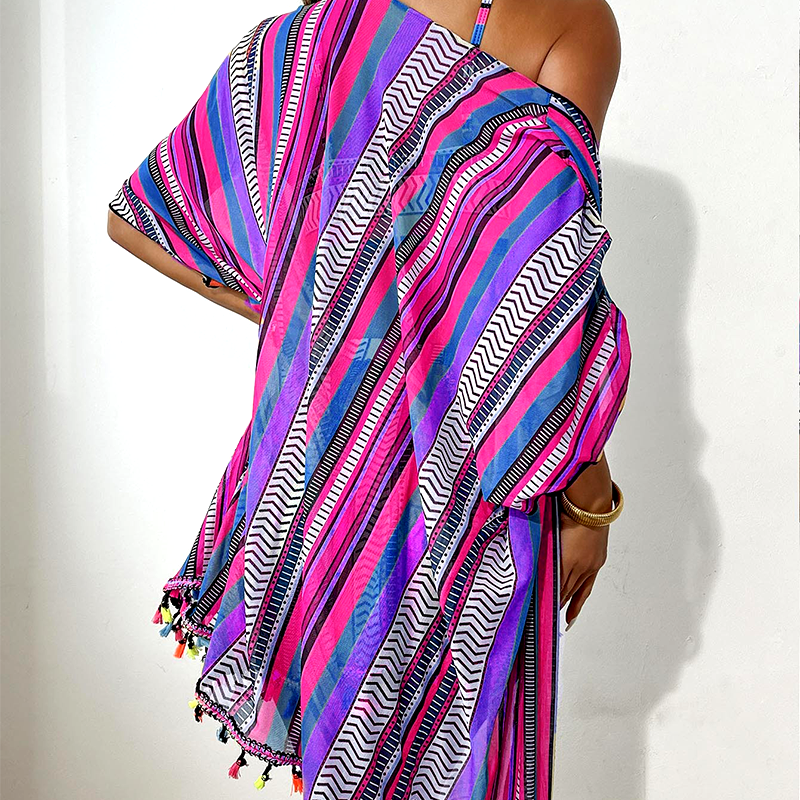 STYL, KTÓRY PRZYCIĄGA SPOJRZENIA – Wyraziste, modne paski w intensywnej czerwieni, fiolecie lub różu! Ten efektowny komplet sprawi, że staniesz się gwiazdą plaży — zarówno przy basenie, jak i podczas spacerów nadmorską promenadą.
