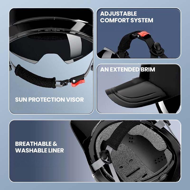 OSŁONA PRZED SŁOŃCEM: Wydłużony daszek i wbudowana chowana osłona przeciwsłoneczna chronią oczy przed oślepiającym światłem i promieniowaniem UV. Ta podwójna konstrukcja poprawia widoczność i komfort w jasnym świetle słonecznym bez konieczności stosowania dodatkowych okularów przeciwsłonecznych.